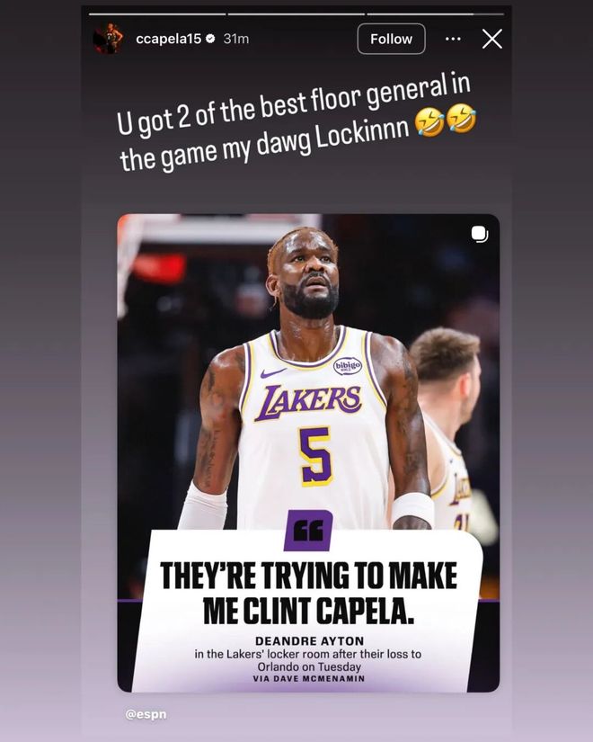 卡佩拉对艾顿送来祝福:你的身边可是有三个会给你传球的人。